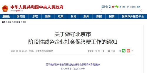 關(guān)于做好北京市階段性減免企業(yè)社會保險費工作的通知