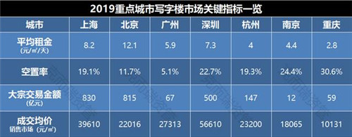 分析認(rèn)為,2019全國寫字樓市場(chǎng)各重點(diǎn)城市租金下行為普遍趨勢(shì);空置率方面,一線城市中北京和廣州相對(duì)合理,上海和深圳持續(xù)攀升居于高位;二線重點(diǎn)城市去化形勢(shì)也較為嚴(yán)峻。