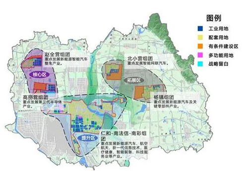 示范區(qū)規(guī)劃了100平方公里“三區(qū)五組團(tuán)”空間布局,在減量發(fā)展前提下實(shí)現(xiàn)產(chǎn)業(yè)集聚、產(chǎn)城融合,包括22.8平方公里工業(yè)用地,3.2 平方公里多功能用地,44 平方公里配套用地,20 平方公里大尺度綠色空間,同時(shí)儲(chǔ)備10平方公里發(fā)展預(yù)留地用于承接重大項(xiàng)目。