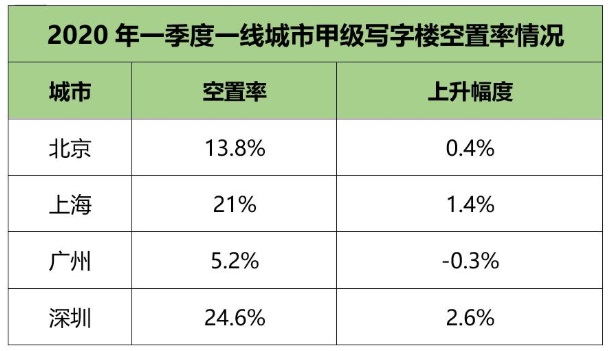 3、一季度空置率,最高的是深圳,達(dá)到24.6%,其次是上海21%,北京13.8%,廣州最低,5.2%。廣州也是四個(gè)一線城市中唯一空置率下降的城市。