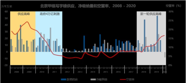 高力國際華北區(qū)研究部陸明對此的觀點是:“北京市場的核心問題依然是高供應(yīng)量推高空置率。2020年依然是供應(yīng)高峰年,整體空置水平會持續(xù)攀升,有可能會進(jìn)一步突破20%。然而,疫情延緩了很多在建項目的工程進(jìn)度,因此我們預(yù)計會有部分項目將延遲入市,這從一定程度上減輕了市場的供給壓力。隨著疫情的逐步緩解,我們預(yù)計市場活動會在二季度出現(xiàn)較為明顯的復(fù)蘇跡象。同時,我們維持在2019年四季度對于市場租金高位盤整態(tài)勢的基本判斷,在疫情的影響下,租金的調(diào)整幅度將加大;谀壳耙咔楹笃诘氖袌鰻顟B(tài),以及新增供應(yīng)量的逐步入市,租金預(yù)期大概會在明年發(fā)生轉(zhuǎn)變!
