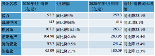 除前述龍頭房企外,包括富力、雅居樂、正榮地產(chǎn)、美的置業(yè)、佳兆業(yè)等多家房企陸續(xù)公布了4月銷售數(shù)據(jù)。根據(jù)觀點指數(shù)公布的2020年前4月房企銷售30強榜單,上述房企除綠城中國外,其余企業(yè)銷售均同比下降。