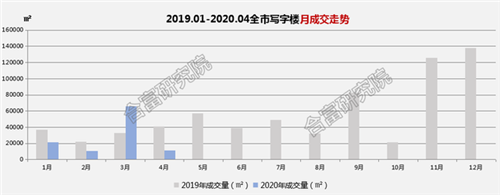 房訊網(wǎng)訊 合富大數(shù)據(jù)顯示,4月廣州全市寫字樓成交量為11054㎡,同比下降72%,環(huán)比3月份下降83%。寫字樓市場(chǎng)成交量波動(dòng)主要來自大手交易,3月份保利魚珠港產(chǎn)生年內(nèi)最大規(guī)模交易,對(duì)比之下4月環(huán)比降幅較大。本月無新增供應(yīng)寫字樓項(xiàng)目。