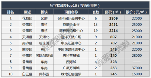 本月寫字樓成交主要集中在番禺及花都區(qū),由于上月大宗交易集中釋放,本月其余區(qū)域僅有零星成交量。