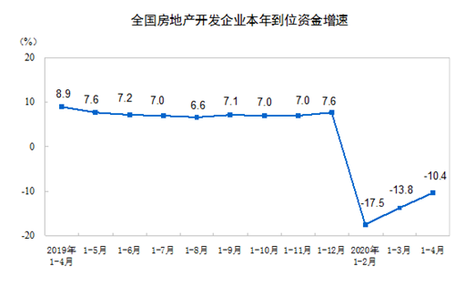 1—4月份,房地產開發(fā)企業(yè)到位資金47004億元,同比下降10.4%,降幅比1—3月份收窄3.4個百分點。其中,國內貸款8730億元,下降2.5%;利用外資23億元,下降31.6%;自籌資金14875億元,下降5.2%;定金及預收款13990億元,下降18.9%;個人按揭貸款7601億元,下降5.4%。