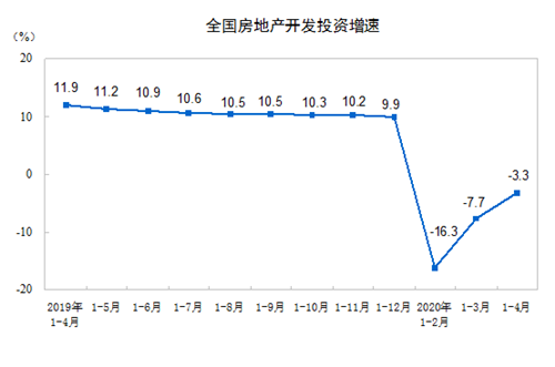 1—4月份,全國房地產開發(fā)投資33103億元,同比下降3.3%,降幅比1—3月份收窄4.4個百分點。其中,住宅投資24238億元,下降2.8%,降幅收窄4.4個百分點。