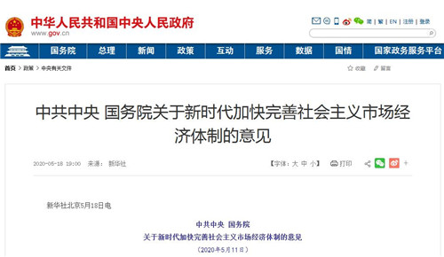 關(guān)于新時(shí)代加快完善社會(huì)主義市場經(jīng)濟(jì)體制的意見