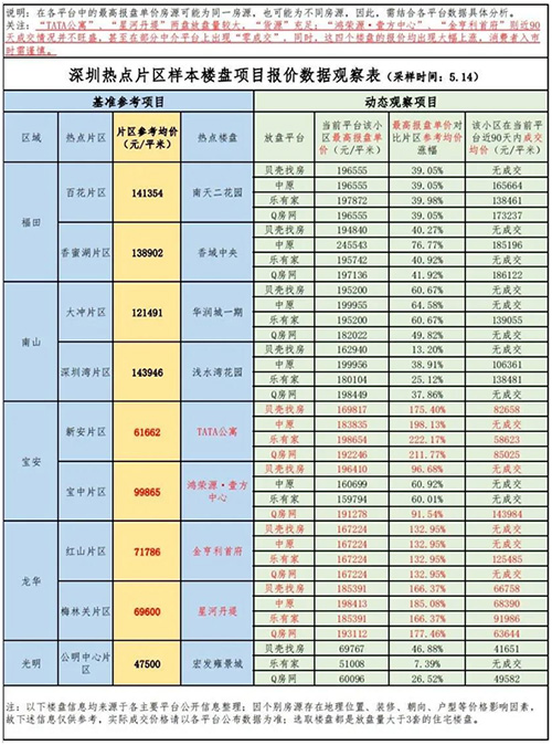 根據(jù)抽樣觀察對(duì)比,深圳部分樓盤報(bào)價(jià)出現(xiàn)大幅上漲,價(jià)格最高偏離幅度超過(guò)200%。其中包括寶安區(qū)的TATA公寓、鴻榮源·壹方中心、龍華區(qū)的星河丹堤和金亨利首府。