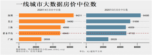 一線城市房價中位數(shù)的平均值為48449元/建筑平方米,比上月漲1317元/建筑平方米。