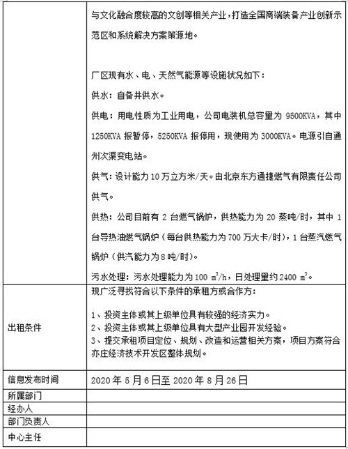房訊網(wǎng)訊 日前,北京華騰橡塑乳膠制品有限公司在北京產(chǎn)權(quán)交易所掛牌公告,公司計劃將廠區(qū)部分土地出租或合作開發(fā),租金或合作開發(fā)方式面議。合作開發(fā)地塊位于通州區(qū)臺湖鎮(zhèn)光機電一體化產(chǎn)業(yè)基地興光五街6號,緊鄰國家級經(jīng)濟技術(shù)開發(fā)區(qū)--亦莊經(jīng)濟開發(fā)區(qū)。