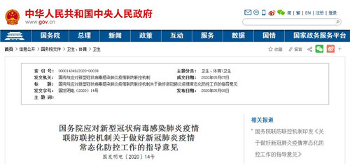 國務(wù)院應(yīng)對新型冠狀病毒感染肺炎疫情聯(lián)防聯(lián)控機(jī)制關(guān)于做好新冠肺炎疫情常態(tài)化防控工作的指導(dǎo)意見
