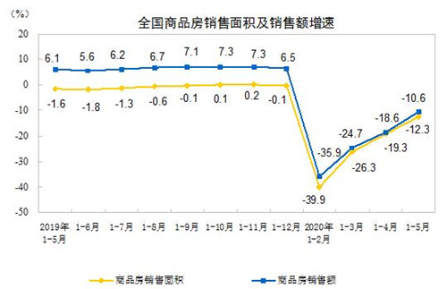 商品房銷售額46269億元,下降10.6%,降幅比1—4月份收窄8.0個(gè)百分點(diǎn)。其中,住宅銷售額下降8.4%,辦公樓銷售額下降35.3%,商業(yè)營業(yè)用房銷售額下降26.6%。