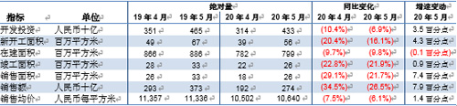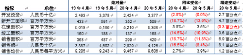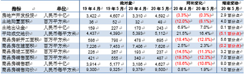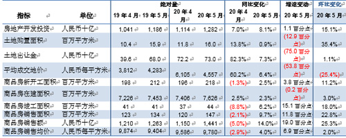 2020年1-5月,全國房地產(chǎn)開發(fā)投資額累計人民4.6萬億元,同比減少0.3%。同期,全國房地產(chǎn)開發(fā)企業(yè)土地購置面積達4,750萬平方米,較去年同期的5,170萬平方米減少8.1%;土地出讓金累計人民幣2,430億元,同比增加7.0%;土地單價同比上揚16.4%至每平方米人民幣5,112元。新開工面積約6.95億平方米,同比減少12.8%。