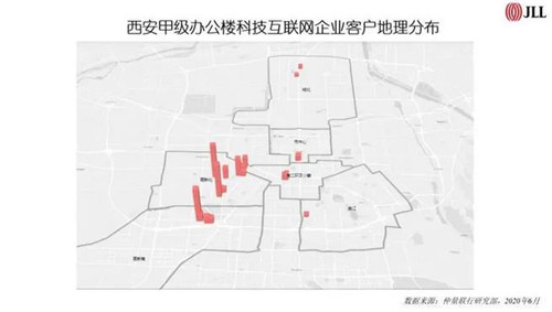 仲量聯(lián)行西安商業(yè)地產(chǎn)部總監(jiān)何娜表示,作為西安戰(zhàn)略新興產(chǎn)業(yè),科技互聯(lián)網(wǎng)企業(yè)成為辦公樓需求的重要支撐,產(chǎn)業(yè)位列西安辦公樓市場新增需求前三名。對比過去三年間科技互聯(lián)網(wǎng)企業(yè)在西安甲級辦公樓中的分布,不難發(fā)現(xiàn),依托科技互聯(lián)網(wǎng)產(chǎn)業(yè)優(yōu)勢,高新區(qū)兩大商務區(qū)吸引了大批科技企業(yè)進駐,已形成產(chǎn)業(yè)聚集效應,且企業(yè)選址越來越具有鮮明的特色需求和產(chǎn)業(yè)驅(qū)動的趨勢。例如中資大客戶華為在西安的布局選址,企業(yè)從戰(zhàn)略角度關注區(qū)域間的聚集和樓宇間的分散,是企業(yè)客戶選址需求多元化的表現(xiàn)。