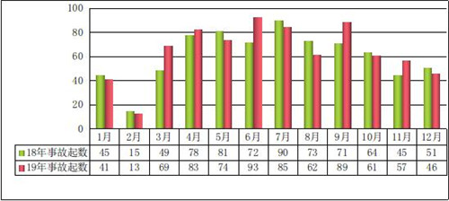 圖3 2019年全國房屋市政工程生產(chǎn)安全較大及以上事故起數(shù)情況
