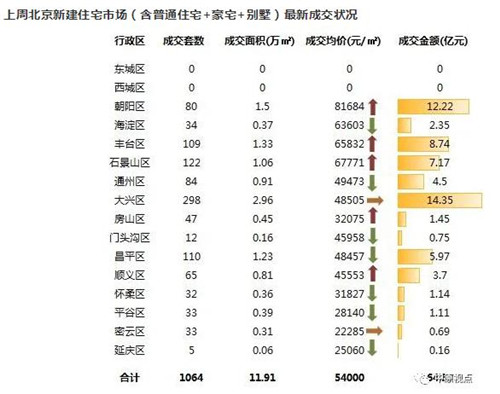 房訊網(wǎng)訊 根據(jù)北京中原的統(tǒng)計數(shù)據(jù),上周北京新建住宅市場成交64.32億元,與前一周幾乎持平,創(chuàng)下今年成交額周度第三位。成交1064套,環(huán)比前一周減少86套,其中排名前20樓盤中,非限競房占據(jù)主力。最新新房成交均價為54000元/平方米,價格環(huán)比上揚。