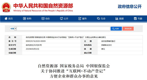 自然資源部 國家稅務(wù)總局 中國銀保監(jiān)會(huì)關(guān)于協(xié)同推進(jìn)“互聯(lián)網(wǎng)+不動(dòng)產(chǎn)登記”方便企業(yè)和群眾辦事的意見