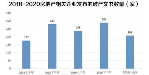 疫情加速了房地產行業(yè)的洗牌。人民法院公告網(wǎng)顯示,截至2020年6月5日,今年房地產企業(yè)的破產數(shù)量已經(jīng)達208家,超過2018年上半年的177家破產數(shù)量,與2019年同期相對持平。