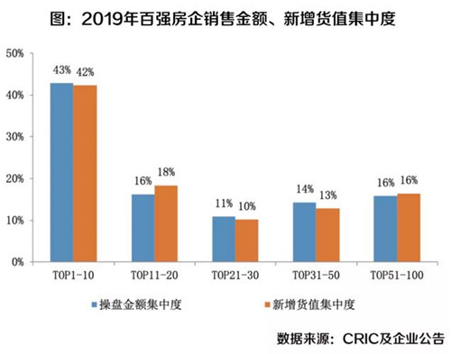 數(shù)據(jù)顯示,2019年銷售排行榜TOP50房企權益銷售金額在百強企業(yè)內的集中度達到43%,幾乎占據(jù)行業(yè)一半,小房企的生存空間不容樂觀。