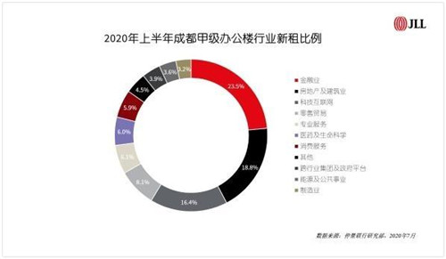 房地產(chǎn)建筑業(yè)辦公需求回暖。隨著東部新區(qū)設立,成都城市版圖擴容,新區(qū)開發(fā)帶動城市化提速,基建與房地產(chǎn)投資必將隨之而來。房地產(chǎn)建筑業(yè)的辦公需求上半年上升明顯,新租占比達18.8%,較2019年高出5.1個百分點。