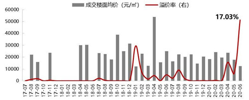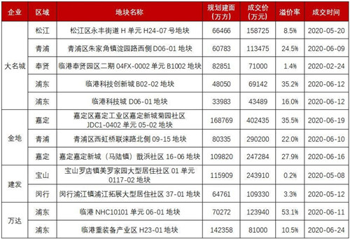 表:2020年上半年溢價(jià)率超10%的商品住宅用地