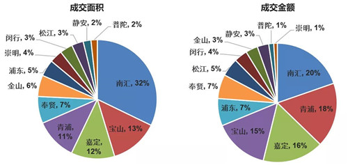 從成交金額來(lái)看,南匯、青浦、嘉定、寶山4區(qū)同樣位居前列,4區(qū)土地成交金額占比合計(jì)68.8%;其中,南匯成交金額占比全市最高,為19.7%。