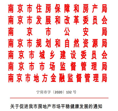 房訊網(wǎng)訊 7月23日凌晨,南京七部門聯(lián)合印發(fā)《關于促進我市房地產市場平穩(wěn)健康發(fā)展的通知》,《通知》提出,加大住宅用地供應力度,支持剛性購房需求,加強熱點樓盤銷售管理,完善住房限購政策,規(guī)范新建商品住房裝修行為等九項新政。