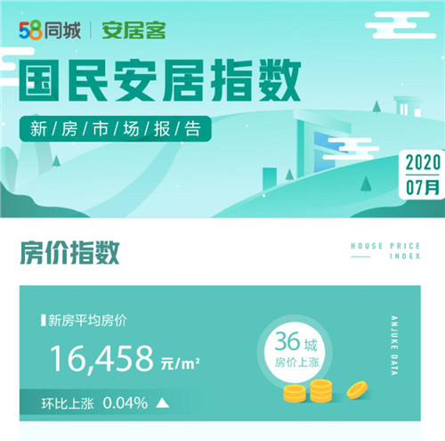 近日,58同城、安居客發(fā)布2020年《7月國民安居指數(shù)報告》(后文簡稱《報告》)顯示,相較上月,7月份房地產(chǎn)市場找房熱度有所回升,總體波動不大;購房者信心指數(shù)環(huán)比上漲3.1%。