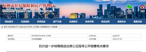 7月2日,杭州市房地產(chǎn)市場(chǎng)平穩(wěn)健康發(fā)展領(lǐng)導(dǎo)小組辦公室發(fā)布《關(guān)于進(jìn)一步明確商品住房公證搖號(hào)公開(kāi)銷售有關(guān)要求的通知》(以下簡(jiǎn)稱《通知》),對(duì)公證搖號(hào)銷售有關(guān)事項(xiàng)進(jìn)行了明確。