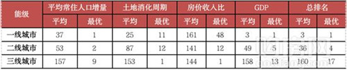 從各能級城市綜合得分來看,各能級城市之間的差異有擴大的趨勢。