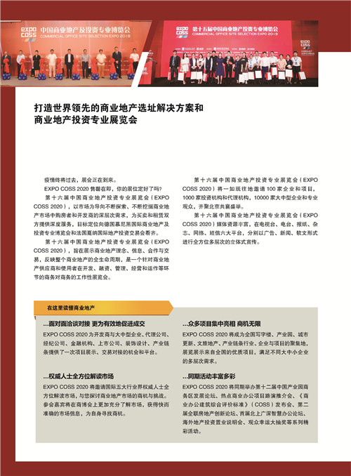 房訊網(wǎng)訊 9月11-12日,第十六屆中國(guó)商業(yè)地產(chǎn)投資專業(yè)展覽會(huì)將在北京富力萬(wàn)麗酒店舉辦,以"新商辦新園區(qū)新文旅"為主題,探索商辦行業(yè)在疫情下涌現(xiàn)出的新科技、新物種、新服務(wù),以市場(chǎng)為導(dǎo)向推動(dòng)中國(guó)商業(yè)地產(chǎn)復(fù)蘇。