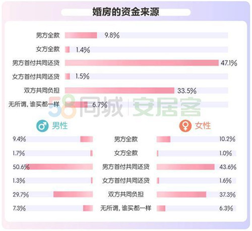 調(diào)查還顯示,有47.1%的人表示婚房是由男方出首付,雙方共同還貸來(lái)解決。此外,選擇婚房資金由雙方共同負(fù)擔(dān)的占比也有33.5%。