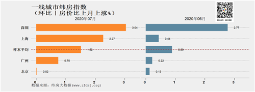 8月24日,緯房大數(shù)據(jù)發(fā)布的2020年7月重點(diǎn)城市緯房指數(shù)。緯房指數(shù)顯示,一線城市漲幅擴(kuò)大,二三四線城市穩(wěn)中有升。