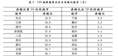 而100個城市中一、二、三四線的新建商品住宅存銷比分別為13.9、11.3和12.0個月。根據(jù)報告,存銷比排名前十位的城市是包頭、日照、漳州、景德鎮(zhèn)、三亞、香河、煙臺、北海、蕪湖、武漢。除武漢外,剩下9個城市都是三四線城市。這意味著雖然二線城市的庫存規(guī)模有比較明顯的攀升,但存銷比數(shù)據(jù)低于一線和三四線城市。