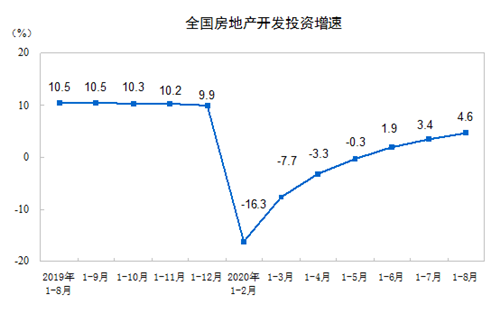 1—8月份,全國(guó)房地產(chǎn)開(kāi)發(fā)投資88454億元,同比增長(zhǎng)4.6%, 增速比1—7月份提高1.2個(gè)百分點(diǎn)。其中,住宅投資65454億元,增長(zhǎng)5.3%,增速提高1.2個(gè)百分點(diǎn)。