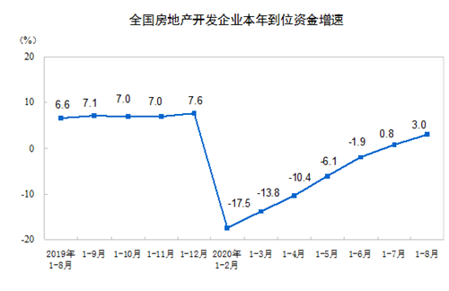 1—8月份,房地產(chǎn)開(kāi)發(fā)企業(yè)到位資金117092億元,同比增長(zhǎng)3.0%,增速比1—7月份提高2.2個(gè)百分點(diǎn)。其中,國(guó)內(nèi)貸款18016億元,增長(zhǎng)4.0%;利用外資101億元,增長(zhǎng)24.5%;自籌資金37320億元,增長(zhǎng)3.6%;定金及預(yù)收款38837億元,增長(zhǎng)1.2%;個(gè)人按揭貸款18957億元,增長(zhǎng)8.6%。
