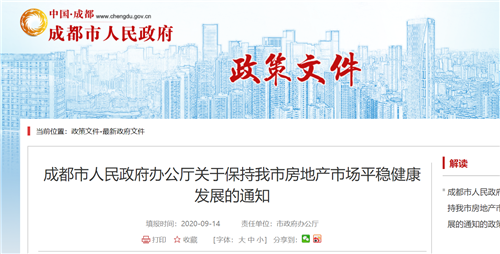 房訊網(wǎng)訊 9月14日,成都市人民政府辦公廳發(fā)布《成都市人民政府辦公廳關(guān)于保持我市房地產(chǎn)市場(chǎng)平穩(wěn)健康發(fā)展的通知》。