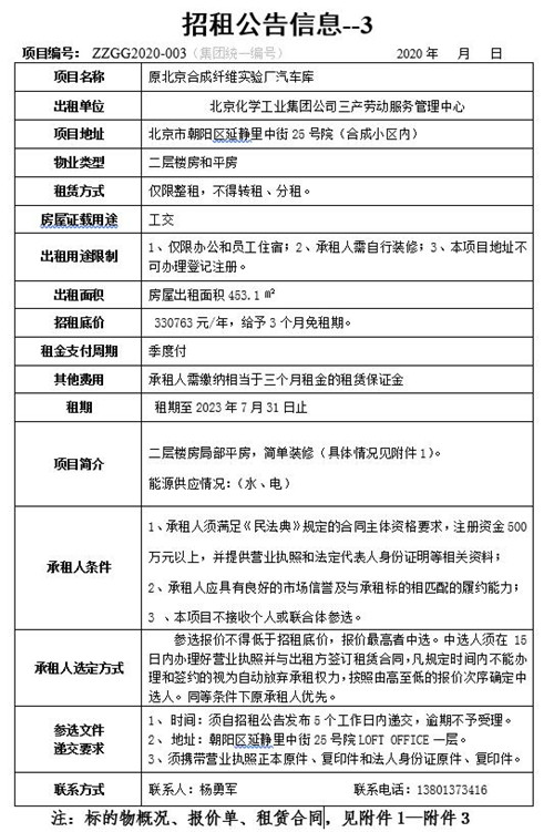 原北京合成纖維實(shí)驗(yàn)廠大食堂招租公告