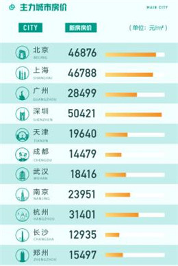 58同城、安居客《8月國(guó)民安居指數(shù)報(bào)告》顯示,8月67城新房在線均價(jià)為16481元/㎡,環(huán)比上漲0.14%,在67城中有33城新房在線均價(jià)環(huán)比上漲。主力城市中深圳相比上月略微下降,新房在線均價(jià)為50421元/㎡。北京、上海新房均價(jià)分別以46876元/㎡和46788元/㎡排名第二和第三。廣州、南京新房在線均價(jià)均在2萬(wàn)元/㎡水平之上,新一線城市中的杭州新房在線均價(jià)則達(dá)到31401元/㎡,天津跌出2萬(wàn)元/㎡行列,為19640元/㎡。城市房?jī)r(jià)環(huán)比漲幅TOP5的城市分別為無(wú)錫、呼和浩特、漳州、西安和九江,其中無(wú)錫環(huán)比增幅最高達(dá)到8.3%,呼和浩特和漳州環(huán)比漲幅也都超過(guò)7%。