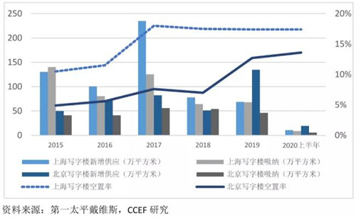疫情沖擊加劇一二線城市商務(wù)寫字樓空置率上升和租金下行壓力