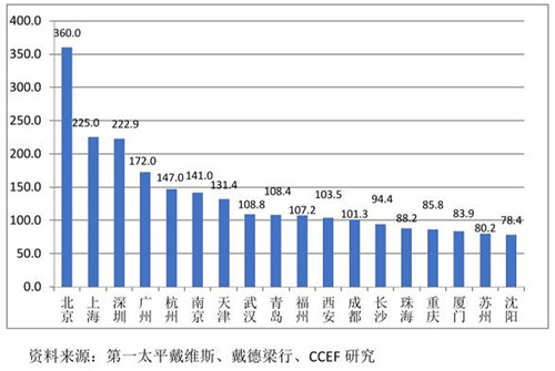 圖3 2020上半年樣本城市甲級寫字樓平均月租(元/平方米)