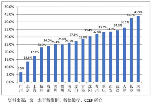 圖4 2020上半年樣本城市甲級寫字樓空置率