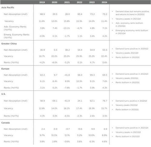 “我們試圖通過深入、科學(xué)地審視這場疫情所產(chǎn)生的力量以及對寫字樓行業(yè)基本面產(chǎn)生的影響。”戴德梁行首席經(jīng)濟學(xué)家、全球研究部主管Kevin Thorpe稱,“我們研究了很多因素,包括失業(yè)、辦公室空置率和租金率、地理特征以及在家辦公的趨勢,最終預(yù)測全球?qū)懽謽鞘袌鰧⑷鎻?fù)蘇。當然,所有房地產(chǎn)都具有強烈的地方性,并不是每一個地方市場都會走同樣的復(fù)蘇之路。”