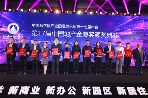 年會上,2020年第十七屆中國地產(chǎn)金廈獎盛大揭曉,對年度涌現(xiàn)出來的優(yōu)秀行業(yè)企業(yè)、商辦產(chǎn)業(yè)園項目進(jìn)行了表彰與嘉獎。