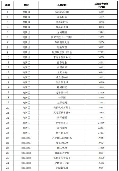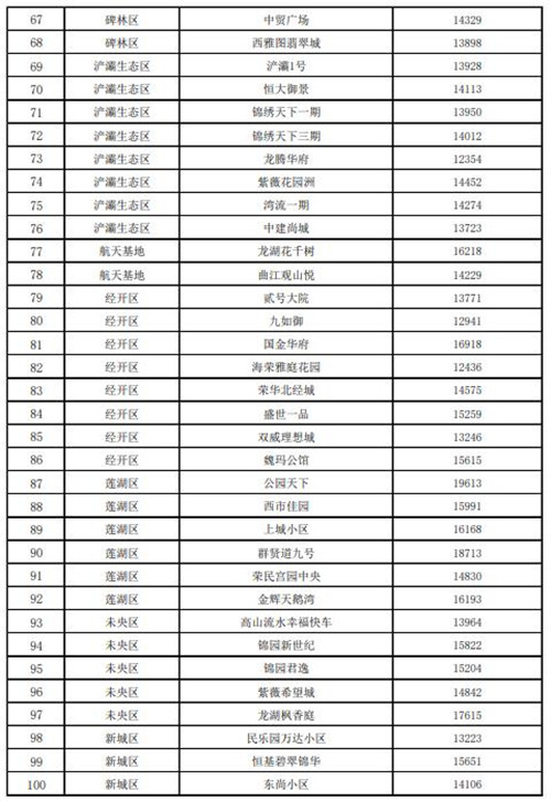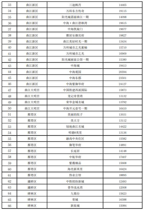 房訊網(wǎng)訊 10月13日,西安市住建局發(fā)布通知,將第二批住宅小區(qū)二手住房成交參考價(jià)格予以公布,共涉及103個(gè)小區(qū)。其中,成交參考價(jià)格最貴的是位于高新區(qū)每平方米25838元的天地源楓林意樹小區(qū);價(jià)格最低的是位于灞橋區(qū)的普華淺水灣小區(qū),每平方米12008元。