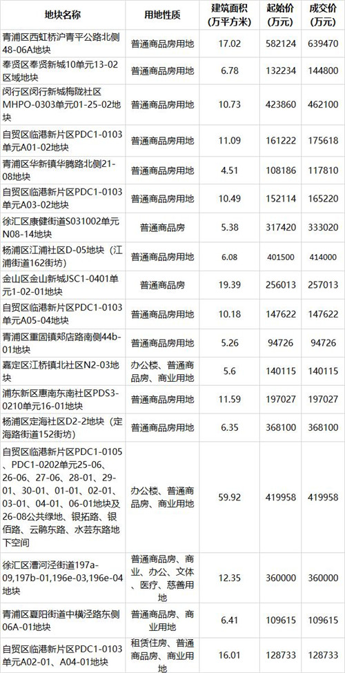 另外5宗觸發(fā)一次性報(bào)價(jià)機(jī)制的地塊分別為奉賢區(qū)奉賢新城10單元13-02區(qū)域地塊、閔行區(qū)閔行新城梅隴社區(qū)MHPO-0303單元01-25-02地塊、自貿(mào)區(qū)臨港新片區(qū)PDC1-0103單元A01-02地塊、青浦區(qū)華新鎮(zhèn)華騰路北側(cè)21-08地塊、自貿(mào)區(qū)臨港新片區(qū)PDC1-0103單元A03-02地塊。