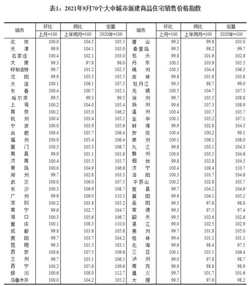 房訊網(wǎng)訊 10月20日,國家統(tǒng)計局公布2021年9月份70個大中城市商品住宅銷售價格變動情況。數(shù)據(jù)顯示,9月份70個大中城市中有27城新建商品住宅價格環(huán)比上漲。