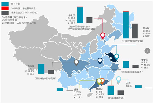 報告指出,2021年第二季度,經(jīng)濟發(fā)展持續(xù)向好。二季度制造業(yè)恢復(fù)勢頭凸顯,新業(yè)態(tài)新動能發(fā)展加快。整體物流市場活躍度提升, 華東地區(qū)、華南地區(qū)高標倉庫租賃問詢和交易增多,華北、華中、華西南地區(qū)市場表現(xiàn)平穩(wěn)。核心城市呈現(xiàn)供不應(yīng)求的局面,周邊城市受益于需求外溢影響,租賃需求呈現(xiàn)旺盛態(tài)勢。