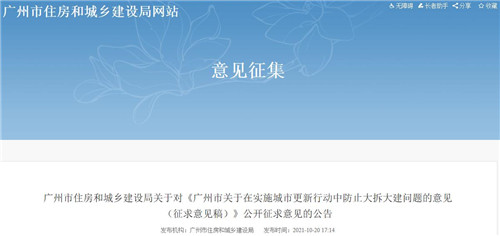 房訊網(wǎng)訊 10月20日,廣州市住房和城鄉(xiāng)建設(shè)局發(fā)布《廣州市關(guān)于在實(shí)施城市更新行動(dòng)中防止大拆大建問題的意見(征求意見稿)》,積極穩(wěn)妥實(shí)施城市更新行動(dòng),保護(hù)、利用、傳承好歷史文化遺產(chǎn),防止大拆大建問題,并向社會(huì)公眾公開征求意見。