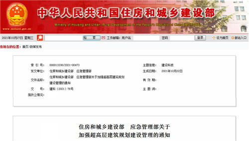 住房和城鄉(xiāng)建設(shè)部 應(yīng)急管理部關(guān)于加強(qiáng)超高層建筑規(guī)劃建設(shè)管理的通知